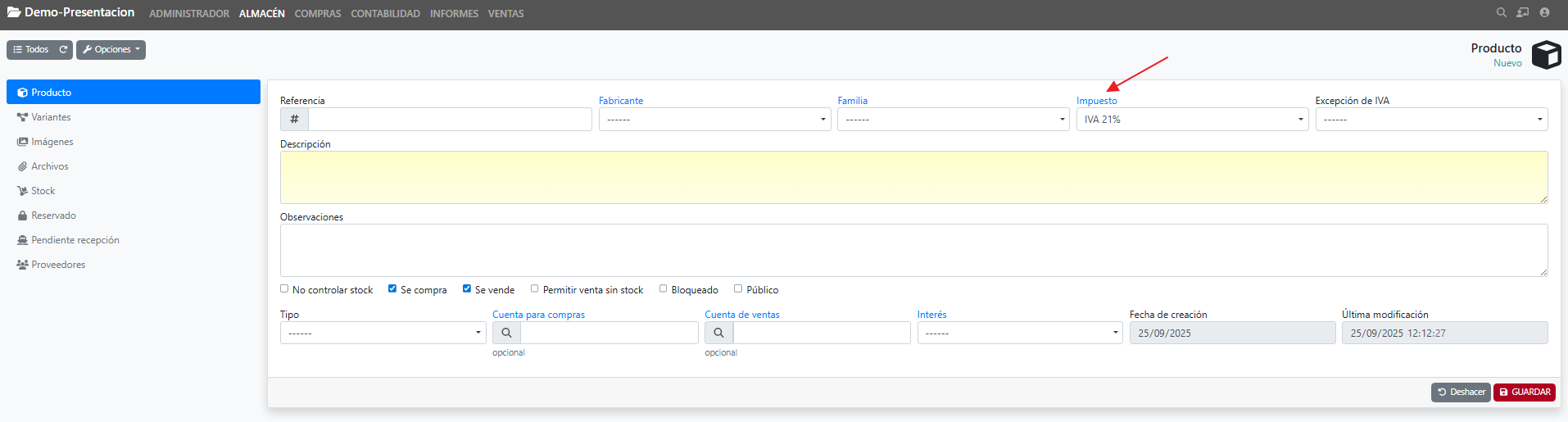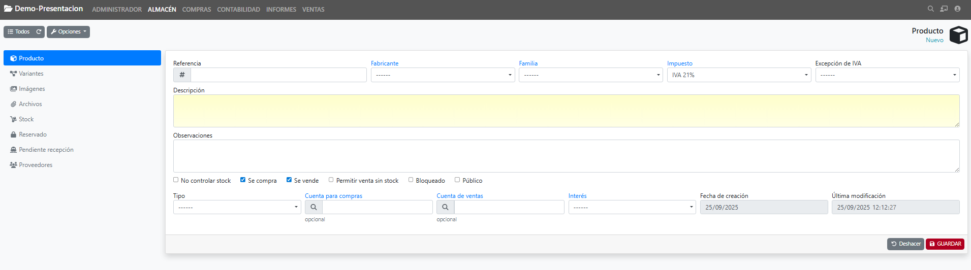 Permitir venta sin stock: Si controlas el stock pero quieres poder vender el producto incluso sin existencias, activa esta opción. Así podrás facturar aunque el stock sea negativo, útil para ventas bajo pedido.