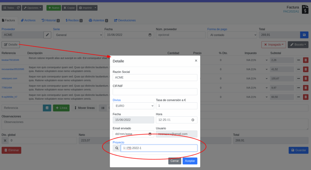Agrupar Facturas o Albaranes por Proyectos🔗