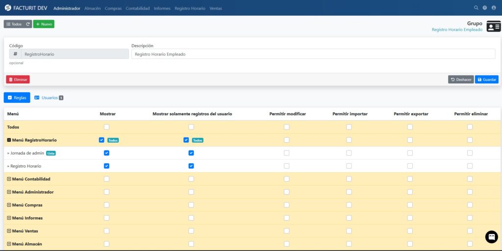 En los grupos diseñados para empleados, el acceso se limita exclusivamente a sus propios fichajes: